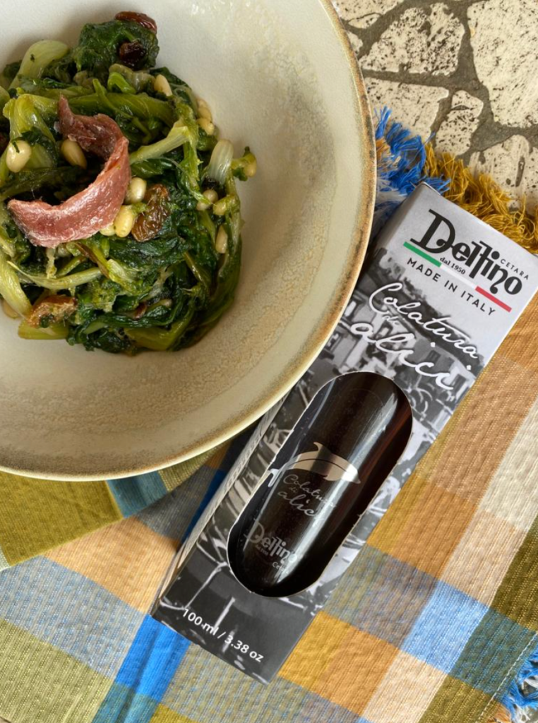 Nella mia versione ho utilizzato i pinoli, dell’uvetta, filetti di alici e per concludere colatura di alici Delfino Battista, il mio tocco finale per rendere questo piatto natalizio davvero squisito e irresistibile.